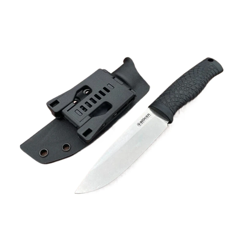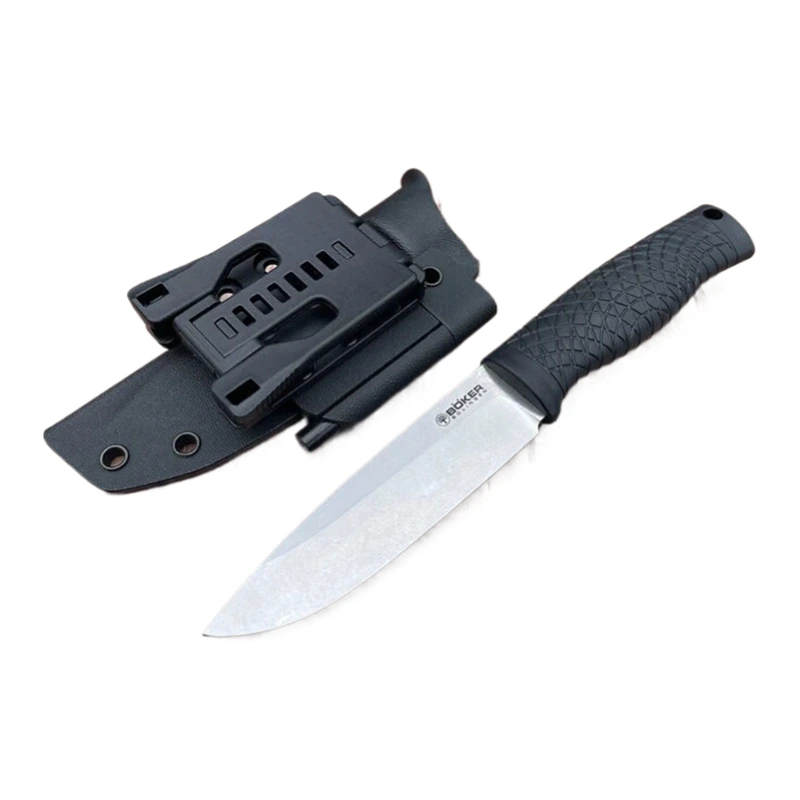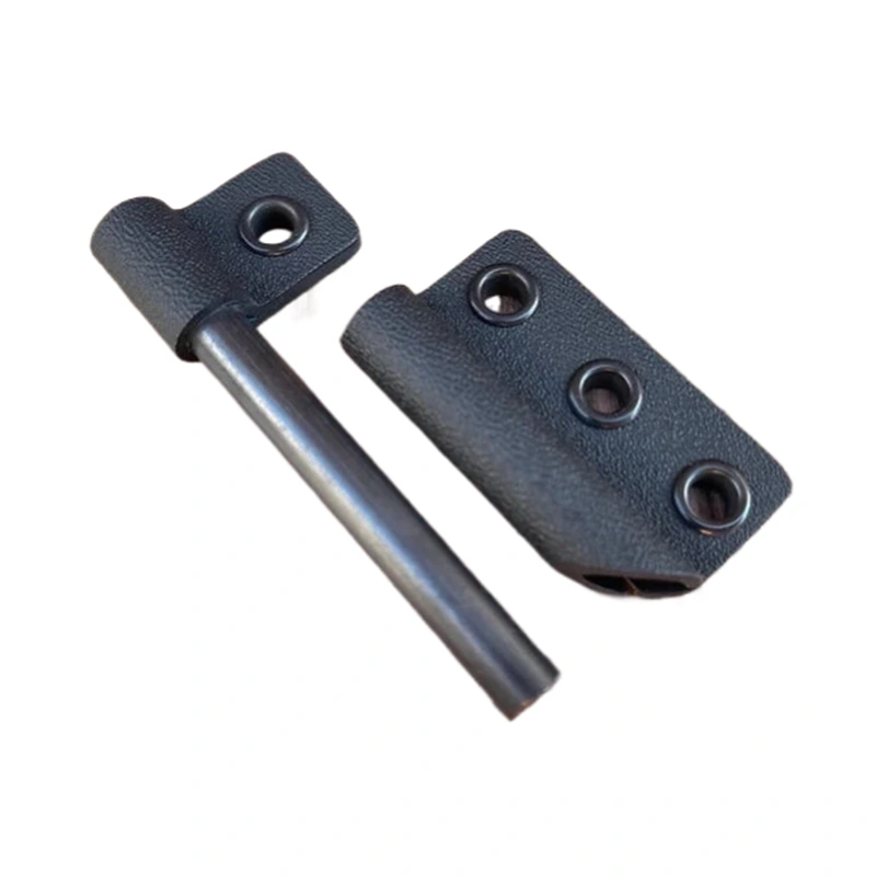 క్యాంపింగ్ కత్తిని బెల్ట్కు సాంప్రదాయ పద్ధతిలో, అడ్డంగా లేదా నిలువుగా అటాచ్ చేయడానికి, నా కస్టమర్లు సాధారణంగా మల్టీ-లోక్ని ఎంచుకుంటారు. మీరు కత్తిని కొంచెం తక్కువగా తీసుకెళ్లాలనుకుంటే, నేను నైలాన్ పట్టీని సిఫార్సు చేస్తున్నాను. వెల్క్రో బెల్ట్ మీదుగా కత్తిని మోయడానికి అనువైనది. వీపున తగిలించుకొనే సామాను సంచి యొక్క పట్టీకి కత్తిని అటాచ్ చేయడానికి వెల్క్రో ఒక ఆచరణాత్మక పరిష్కారం. Kydex షీత్తో పాటు, నేను ఫైర్ స్టీల్ హోల్డర్ను ఐచ్ఛికంగా ఫైర్ స్టీల్తో (80 మిమీ పొడవు) అటాచ్ చేయగలను.